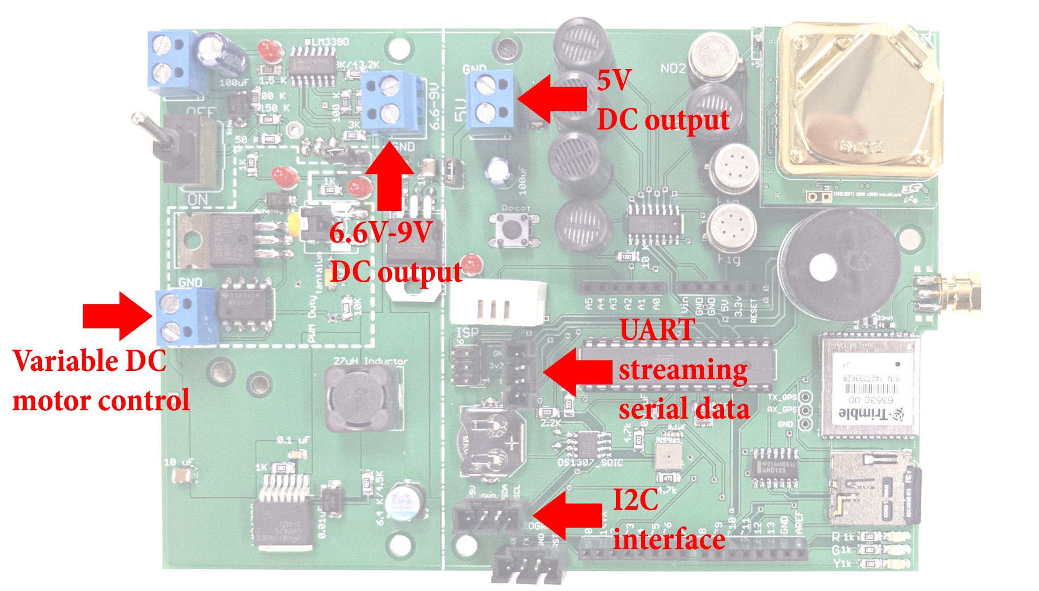The UPOD is also scalable in design, making it ideal for those wishing to integrate it into existing projects, or use it as the foundation for a project of their own. Just a few features include: Variable speed DC motor control (eg. fan or pump), 6.6V (standard) or 9V regulated DC voltage to power peripheral devices, 5V regulated DC voltage output, streaming UART serial data output and a header for interfacing with other I2C protocol devices.