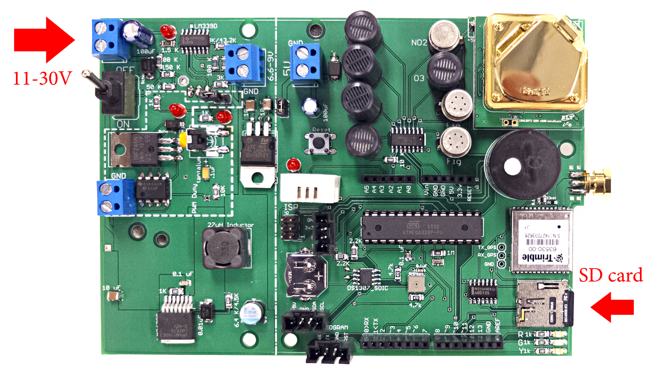The UPOD is, in its most basic form, just an integrated sensor/datalogger system. It incorporates sockets for a variety of commercially available sensors with data-storage on a microSD memory card. Simply add power (wall transformer or 12V battery), insert an SD card and flip the switch. Mount it in an enclosure and VOILA! You’re ready to go.